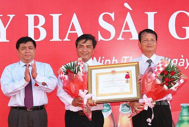 Thừa ủy quyền của Chủ tịch nước, lãnh đạo tỉnh Ninh Thuận trao Huân chương Lao động hạng ba cho tập thể Công ty CP bia Sài - Gòn Ninh Thuận.