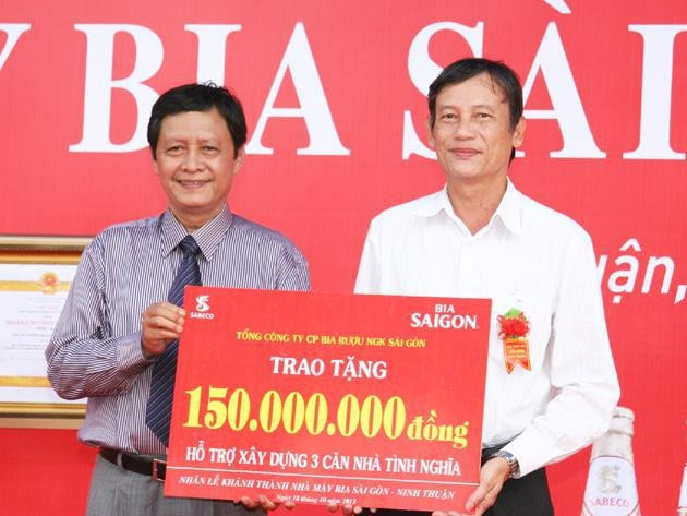 Nhân dịp này, với thông điệp “Bia Sài Gòn chung tay với cộng đồng”, công ty đã trao tặng số tiền 150 triệu đồng, hỗ trợ xây dựng ba căn nhà tình nghĩa tại Ninh Thuận.