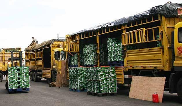 Sản phẩm bia Sài Gòn - Ninh Thuận được vận chuyển đi tiêu thụ.