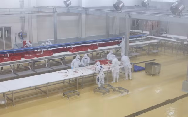 Khâu chế biến đóng gói thịt tại Nhà máy chế biến thịt Masan Hà Nam.