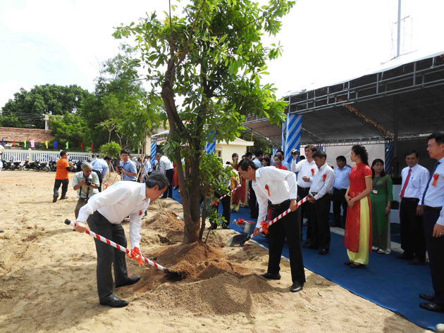 Nhân dịp này, đồng chí Nguyễn Văn Bình đã trao tặng 10 bộ máy vi tính cho Phòng giáo dục huyện Ninh Phước và Trường tiểu học Vĩnh Thuận và cùng các đồng chí lãnh đạo tỉnh Ninh Thuận trồng cây lưu niệm tại lễ khánh thành.