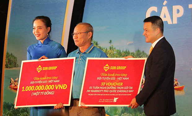 Tại buổi lễ, đại diện của Tập đoàn Sungroup đã trao tặng một tỷ đồng cho đội tuyển U23 Việt Nam và một tuần nghỉ dưỡng trọn gói cho đội tuyển U23 Việt Nam tại khu nghỉ dưỡng sáu sao JW Marriott Phu Quoc Emerald Bay; trao tặng cho Liên đoàn bóng đá Việt Nam 500 triệu đồng ủng hộ chương trình phát triển tài năng bóng đá trẻ.
