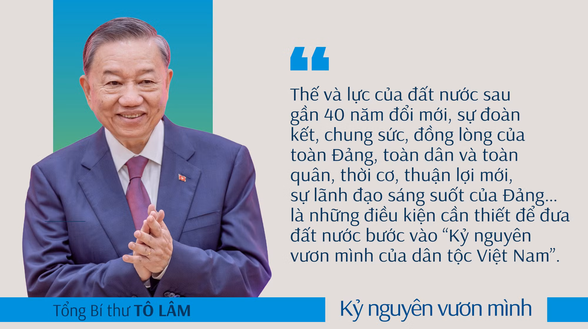 Việc xác định và sử dụng khái niệm “Kỷ nguyên vươn mình của dân tộc Việt Nam”, Trong nhiều bài viết gần đây, Tổng Bí thư Tô Lâm thường xuyên nhắc đến các khái niệm “Kỷ nguyên mới”, “Kỷ nguyên vươn mình của dân tộc Việt Nam”, có thể xem như một thông điệp về một thời kỳ phát triển mới của đất nước ta trong những năm tới, thập kỷ tới, nhấn mạnh quyết tâm hiện thực hóa các mục tiêu phát triển đất nước; tạo ra bước ngoặt lịch sử, mở ra một thời kỳ phát triển mới của quốc gia- dân tộc đang được cán bộ, đảng viên và nhân dân ta hưởng ứng và bạn bè trên thế giới quan tâm. Thế và lực của đất nước sau gần 40 năm đổi mới, sự đoàn kết, chung sức, đồng lòng của toàn Đảng, toàn dân và toàn quân, thời cơ, thuận lợi mới, sự lãnh đạo sáng suốt của Đảng… là những điều kiện cần thiết để đưa đất nước bước vào “Kỷ nguyên vươn mình của dân tộc Việt Nam”.