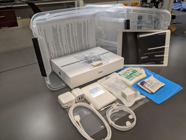 Bộ cảm biến cùng Ipad được kết nối dữ liệu đám mây và bộ sạc không dây.