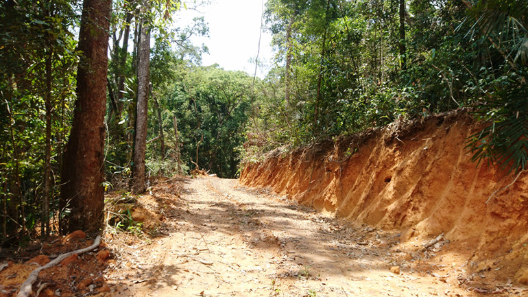 Qua thâm nhập thực tế, đường dẫn vào bãi quặng trái phép có chiều dài khoảng 10km, các đối tượng dùng máy ủi, máy múc mở đường đi qua năm ngọn đồi, với bề mặt đường rộng từ 3 - 3,5m, phía ta-luy dương có đoạn cao gần 3 m, khi mở đường nhiều cây rừng bị ủi bật gốc nằm chỏng chơ ven đường, các đối tượng còn cắt cây rừng lấp xuống khu vực suối làm cầu tạm để vận chuyển máy móc, phương tiện vào bãi khai thác...
