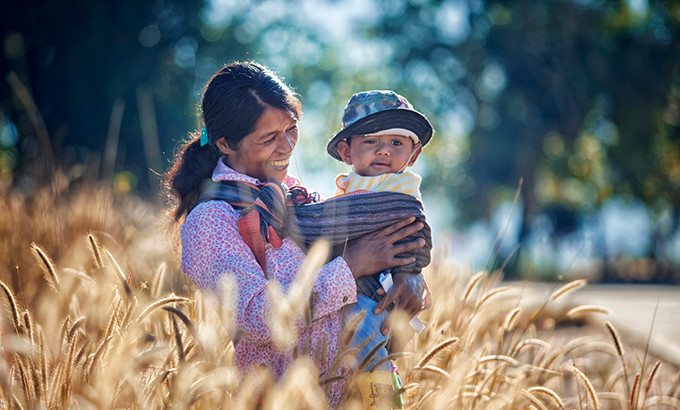 Em bé người K'Ho trong vòng tay yêu thương của người mẹ ở xã Rô Men, huyện Đam Rông, Lâm Đồng.