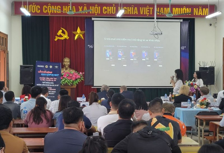 Học viên của Trung tâm Đào tạo lái xe được mời trải nghiệm trò chơi “Tỉnh táo và uống rượu bia lái xe” của dự án trên điện thoại. Với sự hợp tác của các bên liên quan, Tập đoàn Diageo sẽ tiếp cận sinh viên Trường đại học Giao thông vận tải thông qua tương tác tại trường và qua các kênh mạng xã hội.
