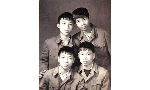 Nhà văn Bình Ca năm 17 tuổi (bìa phải, hàng sau) cùng các nguyên mẫu: Khanh, Việt, Hoàng trong truyện Quân khu Nam Đồng.