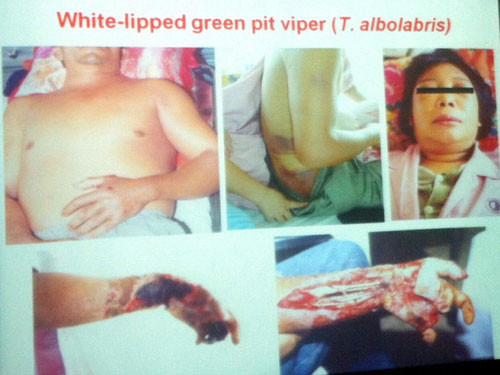 Rắn lục đuôi đỏ là một trong số các loài rắn có nọc độc mạnh. Đặc biệt, khi mang bầu, rắn mẹ có nọc độc cao hơn bình thường. Trong nọc rắn có hơn 20 thành phần khác nhau và vết cắn của loài rắn này thường gây chảy máu nhiều và sưng rất nhanh (ảnh). Khi bị rắn lục đuôi đỏ cắn, bệnh nhân có thể gặp các hiện tượng như: tan máu, phù nề, nhiễm độc thần kinh, liệt hô hấp, trụy tim mạch. Nếu không được sơ cứu đúng cách và cấp cứu kịp thời, nạn nhân có thể bị sốc tâm lý, chất độc di chuyển nhanh đến tim, rối loạn đông máu dẫn đến tử vong.