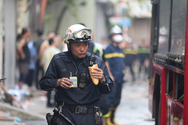 Bữa sáng tranh thủ của các chiến sĩ PCCC.