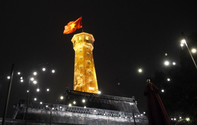 Tại Thủ đô Hà Nội, trước giờ giao thừa, nhiều tuyến phố được trang hoàng lộng lẫy, người dân đổ về khu trung tâm và các điểm bắn pháo hoa đón chào năm mới.