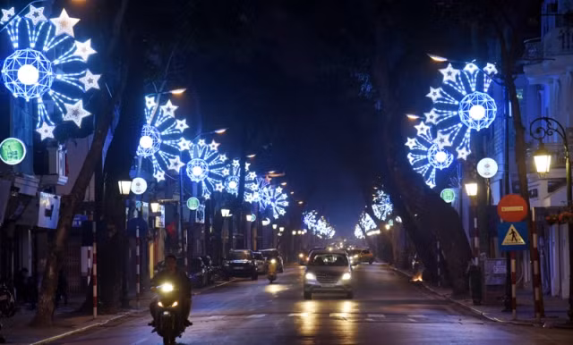 Đường phố tạm ngừng chuyển động trong thời khắc giao thừa.