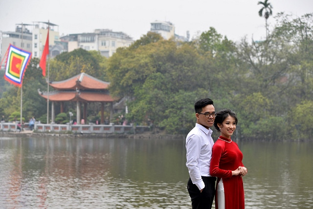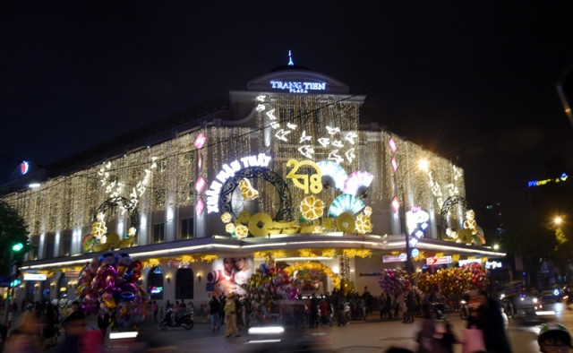 Phố Tràng Tiền và chung quanh Hồ gươm là nơi mọi người đổ về xem bắn pháo hoa chào đón năm mới.