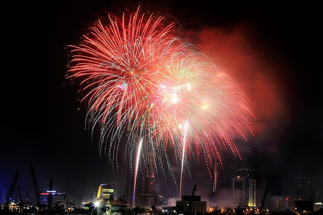 Pháo hoa rực rỡ ở nơi con sông Hồng chảy vào đất Việt