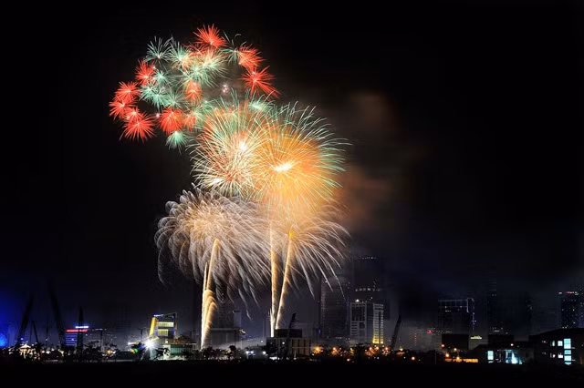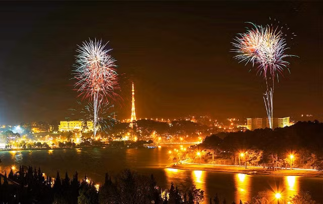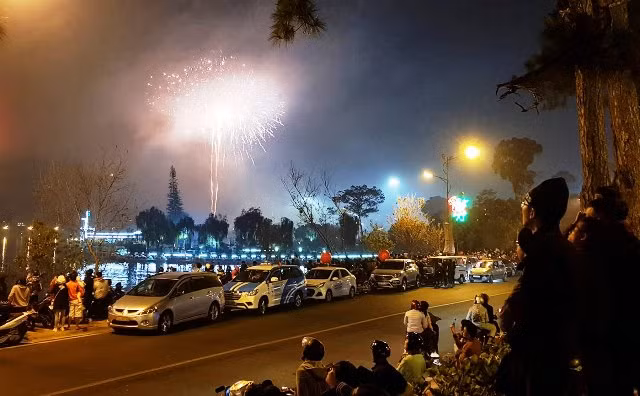 Pháo hoa bên hồ Xuân Hương, Đà Lạt.