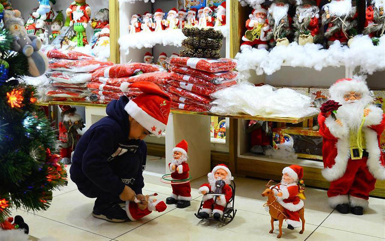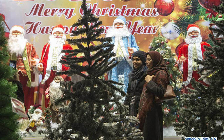 Người dân ngắm nhìn đồ trang trí Giáng sinh trên đường phố ở thủ đô Tehran, Iran (Ảnh: Xinhua)