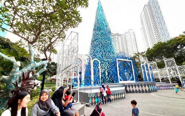 Một cây thông Noel cao 38m ở tổ hợp trung tâm thương mại Central Park ở thủ đô Jakarta, Indonesia. Đây là nơi diễn ra các sự kiện văn hóa thu hút hàng nghìn người trong dịp lễ hội đón chào năm mới (Ảnh: TribunNews)