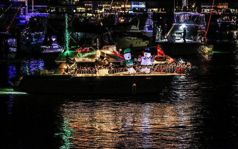 Cuộc thi thuyền trang trí đèn nhân dịp Giáng sinh tại bãi biển Huntington, Mỹ (Ảnh: Xinhua)