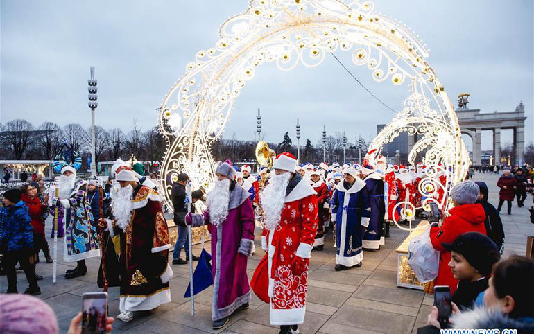 Các ông già Noel trong lễ hội ở Moscow, Nga (Ảnh: Xinhua)