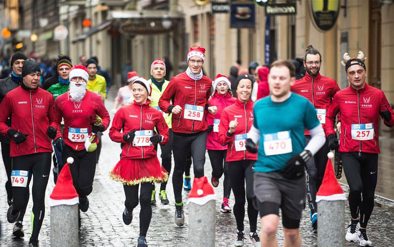 Người dân thành phố Vilnius, Lithuania tham gia cuộc thi chạy hàng năm vào dịp Giáng sinh. Khoảng 3.800 người tham gia cuộc thi năm nay (Ảnh: Xinhua)