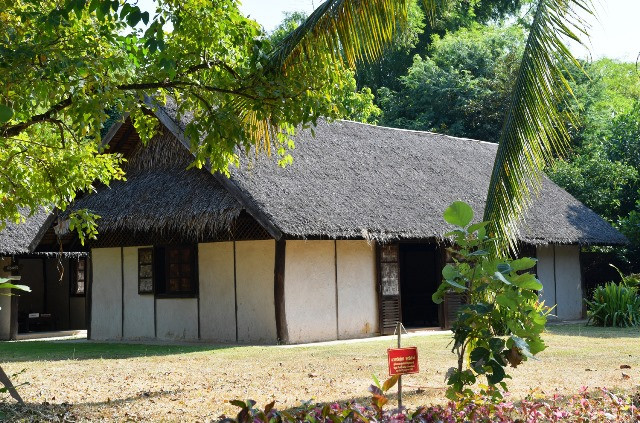 Nhà lợp mái lá tái hiện gần giống nơi Bác Hồ sinh sống ở tỉnh Udon Thani, giai đoạn 1928-1929.