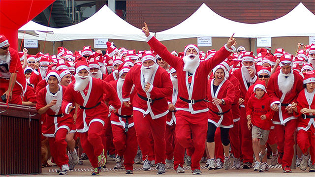 Tổng cộng 1.500 người đóng giả ông già Noel (trong ảnh) đã tham gia cuộc chạy đua Santa Dash được tổ chức hằng năm trên Đại lộ Canada, TP Liverpool (Anh). Những người chạy bộ hoặc đi bộ phải hóa trang với bộ râu trắng và mặc trang phục mầu đỏ của ông già Noel để bắt đầu cuộc đua trên chặng đường 5 km quanh thành phố.