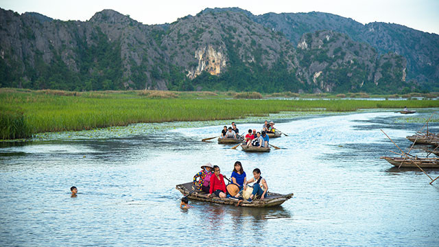 Du khách thảnh thơi ngồi thuyền ngắm cảnh.