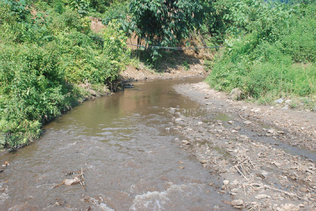 Dòng suối Sảo nước ngầu đục do ô nhiễm.