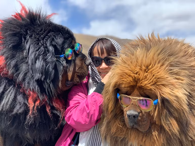 Tiếc là giờ đây chỉ có thể gặp những “chúa tể của thảo nguyên” này ở vài điểm dừng chân, giữa những cung đường ngoằn nghèo hiểm trở. Những chú chó hiền lành ngoan ngoãn ngồi yên để chụp hình lưu niệm cùng khách, với giá 10 CNY một lần. Ngồi giữa hai con thú to đùng để làm kiểu ảnh, tôi mới phát hiện chúng đều đã già, răng lợi móm mém cả. Cũng phải thôi, nếu chúng còn tráng niên, chắc vắt chân lên cổ mà chạy cũng không thoát!