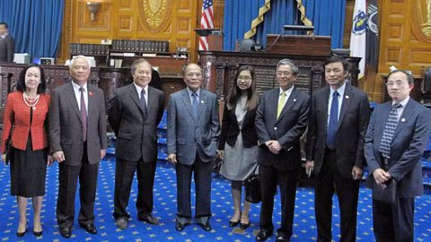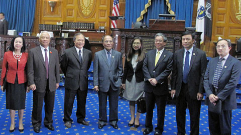 Chủ tịch Quốc hội Nguyễn Sinh Hùng và các đại biểu Việt Nam thăm Hạ viện bang Masachussetts.