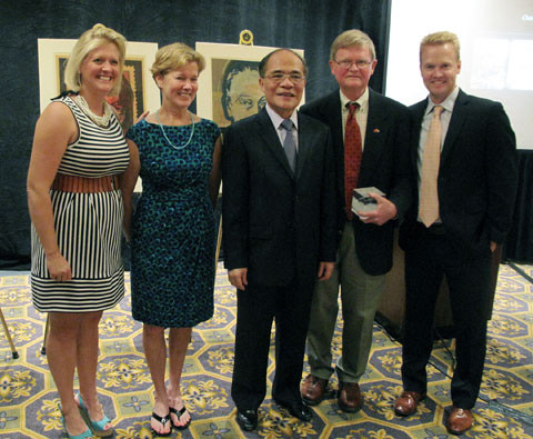 Chủ tịch Quốc hội Việt Nam và các bạn Mỹ chụp ảnh lưu niệm tại cuộc gặp thành phố Boston.