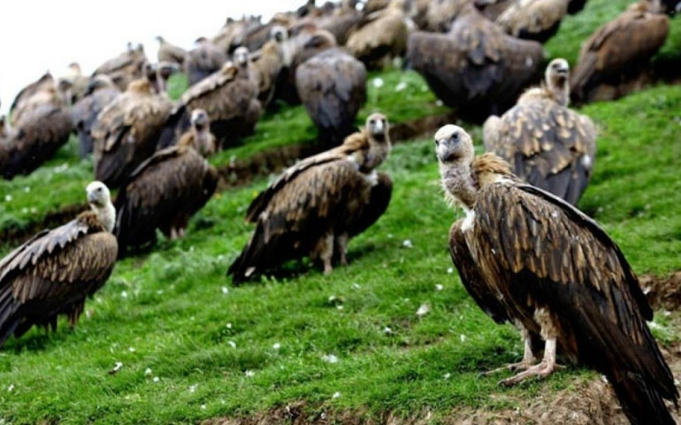 Đàn kền kền chờ đợi giây phút thực hiện nghi thức thiên táng đầy ám ảnh.