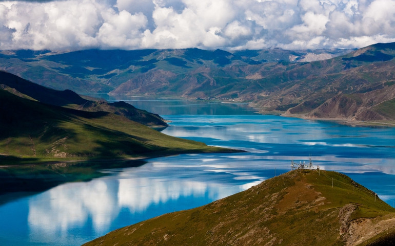 Với sắc mầu xanh thẳm kỳ lạ, Yamdrok còn có tên là hồ San hô, hồ Bọ cạp.