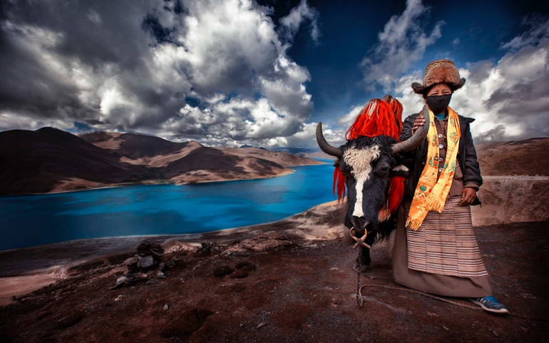 Người phụ nữ Tạng bên hồ Yamdrok.