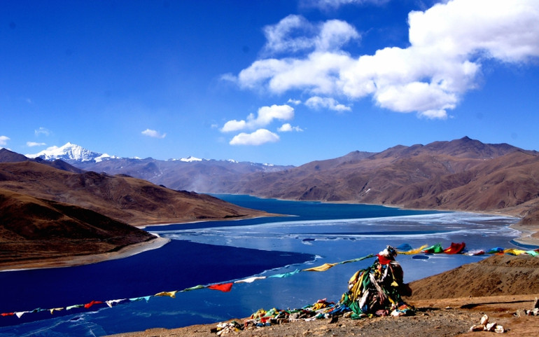Nằm ở độ cao 4.441 m, thánh hồ Yamdrok rộng mênh mông với diện tích mặt nước hơn 600 km2, dài 72 km. Tương truyền, hồ là hóa thân của Long Nữ Palden Lahmo - vị thần bảo hộ cho dải cao nguyên Tibet. Vì thế, chạm tay xuống làn nước thiêng sẽ giúp tiêu trừ nghiệp chướng nhiều đời. Và cúng dường một đồng xu sẽ giúp bạn có nhân duyên quay lại nơi này.