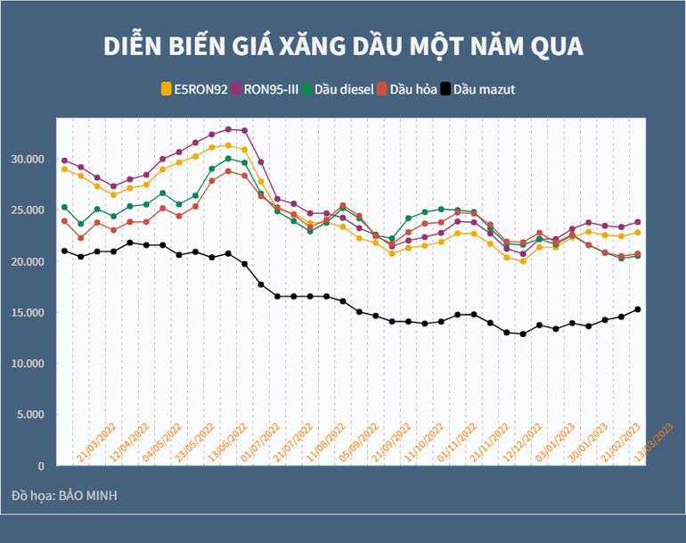 Việc trích lập, không chi sử dụng Quỹ Bình ổn giá xăng dầu đối với các mặt hàng xăng dầu: áp dụng từ 15 giờ ngày 13/3/2023.