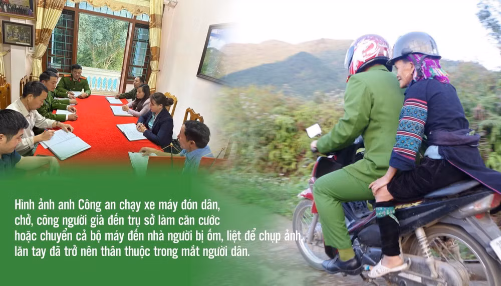 Lãnh đạo xã cũng trách nhiệm không kém lực lượng Công an, cùng với việc chỉ đạo các ban, ngành, đoàn thể xã và kêu gọi những người có uy tín ở thôn bản hỗ trợ lực lượng Công an, họ trực tiếp đến các bản xa tuyên truyền, gọi dân về làm căn cước và định danh điện tử như 1 chiến sỹ Công an.