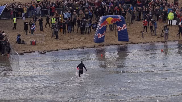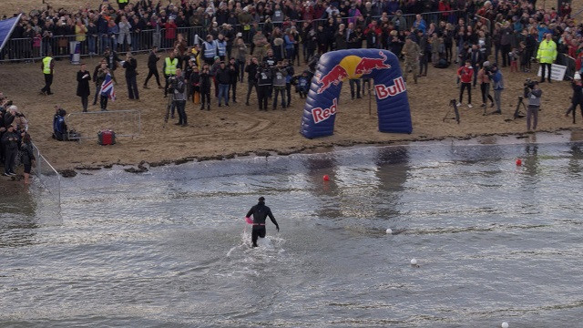 Edgley hoàn thành những mét cuối cùng trước khi cán đích ở bãi biển Margate ngày 4-11. (Ảnh: Red Bull)