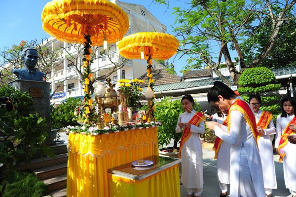 Tham dự buổi lễ có đông đảo học sinh và thầy cô giáo ngôi trường mang tên Thái Phiên. Trường được thành lập từ năm 1963 với tên gọi lúc bấy giờ là Trường trung học Ngoại Ô. Ngôi trường được thành lập như một sự thách thức với bom đạn kẻ thù, là hình ảnh sinh động của ý chí, nghị lực, của truyền thống hiếu học. Hàng nghìn thế hệ học trò Quảng Nam-Đà Nẵng đã học tập và trưởng thành dưới mái trường mang tên nhà chí sĩ yêu nước Thái Phiên nằm trên cung đường Trần Cao Vân (Đà Nẵng).