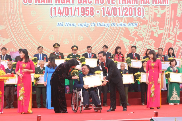 Tại buổi lễ, tỉnh Hà Nam biểu dương, khen thưởng 60 tập thể, cá nhân tiêu biểu trong học tập và làm theo Bác; phát động phong trào thi đua. Thay mặt lãnh đạo Đảng, Nhà nước, các đồng chí Võ Văn Thưởng và Đặng Thị Ngọc Thịnh đã chúc mừng và trao thưởng cho các tập thể và cá nhân tiêu biểu trong học tập và làm theo Bác.