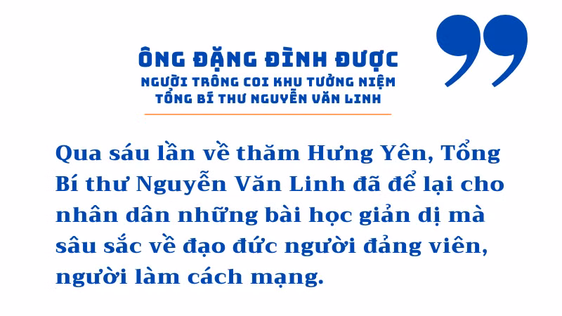 Ông Được bảo: Qua sáu lần về thăm Hưng Yên, Tổng Bí thư Nguyễn Văn Linh đã để lại cho nhân dân những bài học giản dị mà sâu sắc về đạo đức người đảng viên, người làm cách mạng.