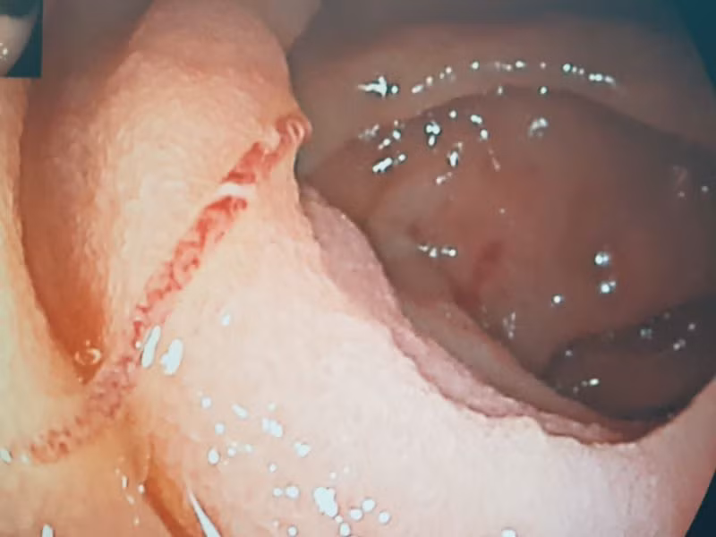 Bệnh nhân này được chuyển từ một bệnh viện tuyến dưới lên cấp cứu Bệnh viện E trong tình trạng mệt mỏi, suy kiệt, da xanh, mất thăng bằng do mất máu nhiều, mạch nhanh, huyết áp tụt… Mặc dù các bác sĩ tuyến dưới cũng cho bệnh nhân thực hiện nội soi dạ dày, đại tràng nhưng không phát hiện tổn thương gây nên tình trạng mất máu của bệnh nhân. Sau khi điều trị khoảng 14 ngày, tình trạng bệnh ngày càng nặng, khiến cơ thể bệnh nhân gần như suy kiệt hoàn toàn.