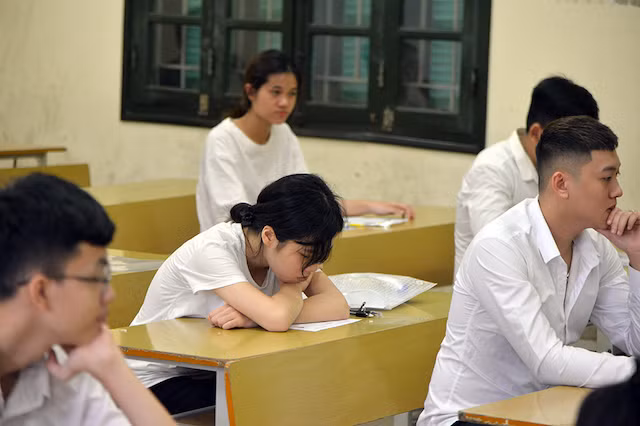 Trước giờ bước vào thi môn đầu tiên.