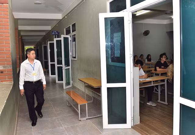 Lực lượng giám sát bên ngoài phòng thi.