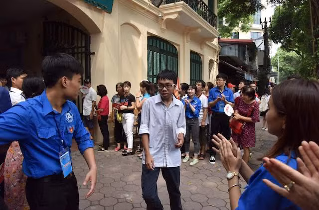 Những thí sinh ra khỏi điểm thi đầu tiên luôn nhận được sự chào đón, khích lệ.