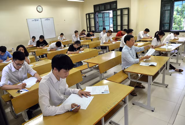 Thí sinh điền thông tin vào giấy làm bài thi, sẵn sàng chờ hiệu lệnh phát đề.
