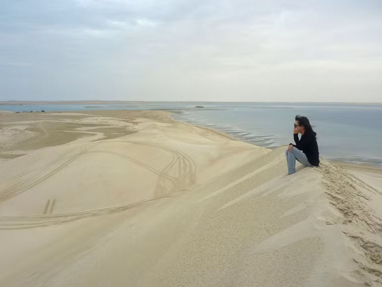 Ngoài trữ lượng dầu mỏ và khí đốt thiên nhiên khổng lồ ẩn sâu trong lòng đất và ngoài biển khơi, Qatar không hề được bà mẹ thiên nhiên ưu đãi chút gì trên bề mặt. Hầu hết lãnh thổ là vùng đồng bằng thấp, khô cằn, bao phủ toàn cát. May sao, miền đất này còn có Khor Al Adaid – “biển nội địa”, với những đụn cát bao quanh một vịnh nhỏ nằm trong vịnh Ba Tư. Nhờ thế, miền sa mạc có tổng cộng vài chục biển hồ xanh mát từ nhỏ đến lớn, giúp đôi mắt du khách có những điểm dừng mát mẻ sau những quãng đường chỉ đơn điệu ngắm cát, trài dài vô tận như không có điểm dừng.