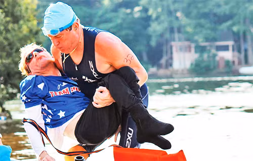 Là một quân nhân, lại được tiếp sức mạnh từ ý chí thép của con trai, Dick Hoyt đã hoàn thành cuộc thi Người Sắt theo cái cách không ai tưởng tượng được: Ông buộc con trai vào người khi bơi, chở con trai trên chiếc xe đạp vượt trăm km và cuối cùng là “biến” thành động cơ đứng sau xe lăn ở chặng đua cuối. Đó là một câu chuyện cổ tích mà phải đến khi xem lại video, người ta mới dám tin là có thật.