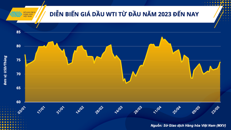 Theo số liệu từ Sở Giao dịch Hàng hóa Việt Nam (MXV), đóng cửa ngày 24/5, giá dầu WTI trên sở NYMEX đạt mức 74,3 USD/thùng, và giá dầu Brent trên sở ICE ở mức 78,2 USD/thùng.