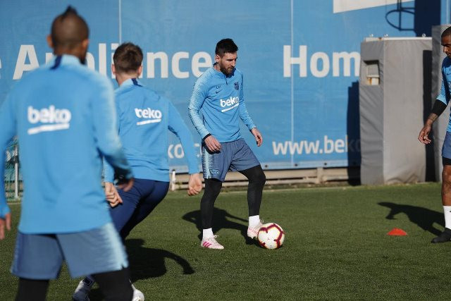 Các cầu thủ Barca luyện tập chuẩn bị đối đầu Levante. (Ảnh: FC Barcelona)